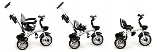 W zależności od wieku i samodzielności dziecka, masz możliwość zdjęcia daszku, barierek i rączki do prowadzenia rowerka. Jeśli Twoja pociecha jest już samodzielna, możesz zdjąć dodatkowe zabezpieczenia.