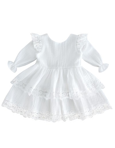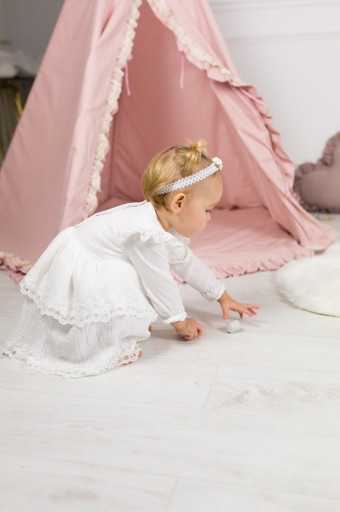 Sukienka Blanca w kolorze śmietankowym. Wykonana z muślinu bawełnianego, obszyta bawełnianą koronką.