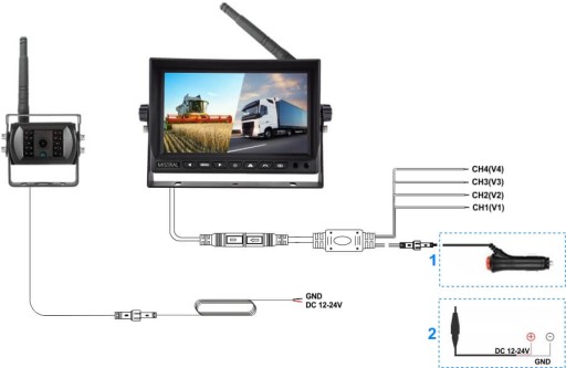 1. Wersja mobilna - monitor można podłączyć za pomocą dołączonej do zestawu ładowarki samochodowej do gniazda zapalniczki lub