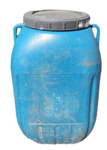 Beczka plastikowa 60 L po spożywce. BECZKA WYMAGA UMYCIA ( widoczne na zdjęciu poniżej). Po jednorazowym użyciu (produkty spożywcze). Zakręcany trwały dekiel.