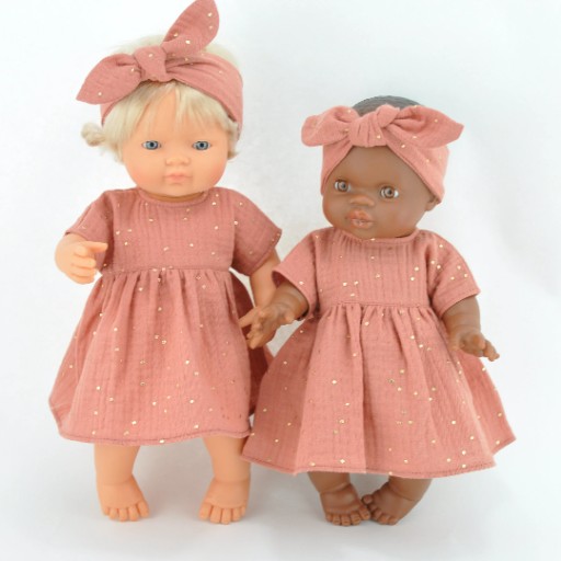 Muślinowa sukienka uszyta specjalnie dla hiszpańskich lalek Miniland. Pasują również na Lalki Minikane i lalki Paola Reina