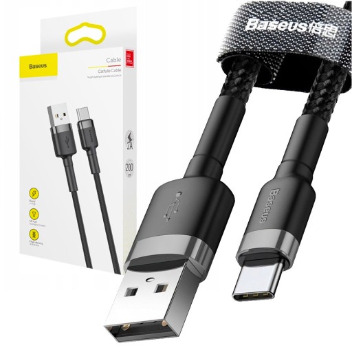 КАБЕЛЬ BASEUS FAST USB/USB-C QC ПРОЧНЫЙ КАБЕЛЬ ДЛЯ ТЕЛЕФОНА И КОМПЬЮТЕРА 2 м