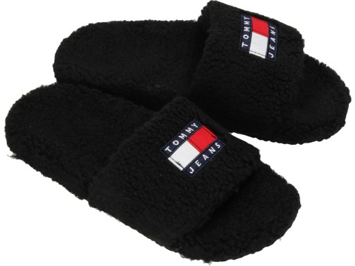 Klapki damskie marki Tommy Jeans model EN0EN01602 w kolorze czarnym. Wykończone sztucznym futerkiem, które zapewni Twoim stopom ciepło i miękkość w chłodne dni. Podeszwa gumowa z wysokogatunkowego tworzywa syntetycznego. Na przodzie cholewki naszywka Tommy Jeans.