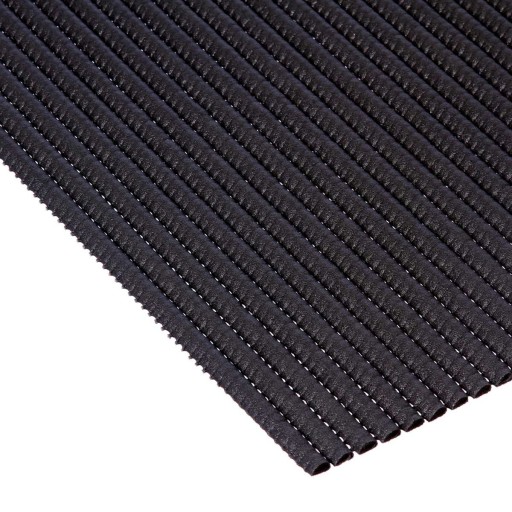 Spód maty łazienkowej został wykonany ze specjalnego tworzywa, co zapobiega przesuwaniu jej po mokrej lub wilgotnej powierzchni. Pozwala to zmniejszyć ryzyko upadku i gwarantuje bezpieczeństwo. Kolor czarny pięknie komponuje się z większością płytek łazienkowych, nadając wnętrzu smaku i elegancji.