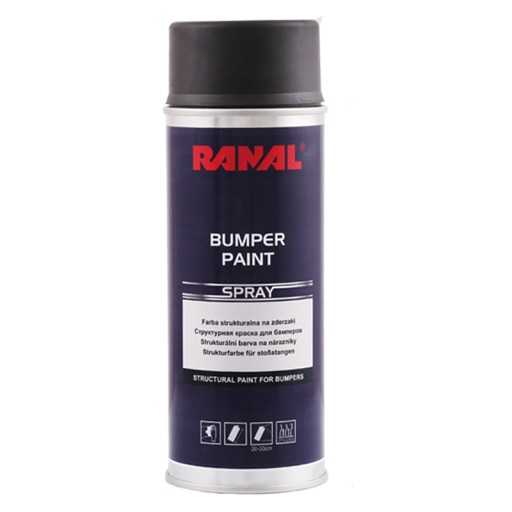 Farba strukturalna jednoskładnikowa Bumper Paint Spray Ranal 500ml przeznaczona jest na zderzaki, listwy i elementy lusterek samochodowych z tworzywa sztucznego. Charakteryzuje się krótkim czasem schnięcia oraz bardzo dobrą przyczepnością do typowych tworzyw sztucznych ( brak przyczepności do PE). Łatwa w stosowaniu, pozwala na uzyskanie odpowiedniego efektu
