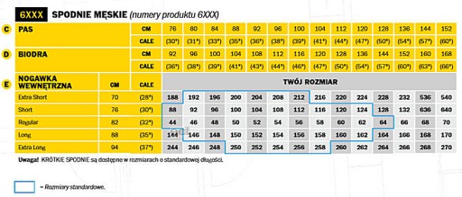 - Rozmiar spodenek: 44, 46, 48, 50, 52, 54, 56, 58