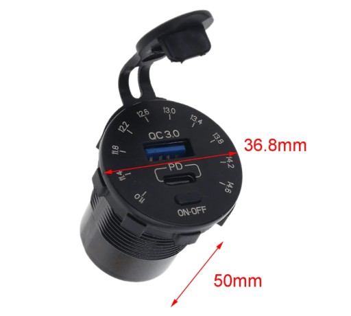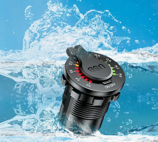 ✅ Wodoodporna szybka ładowarka z gniazdem USB QC 3.0 + USB C PD oraz wbudowanym woltomierzem!