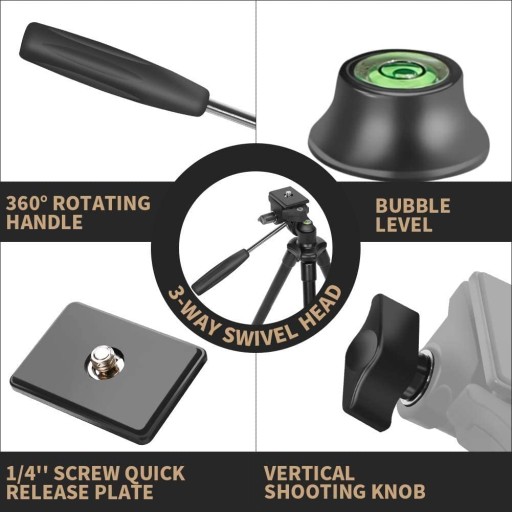 - ❤ 【 Nowy ulepszony statyw 2020】Kompletny statyw z 3-kierunkową głowicą umożliwia zarówno fotografowanie pionowe, jak i poziomo dla Twoich preferencji. Dowolny kąt można elastycznie dostosować do wybranej sceny; funkcja obracania o 360° pomoże uzyskać idealny widok panoramiczny.