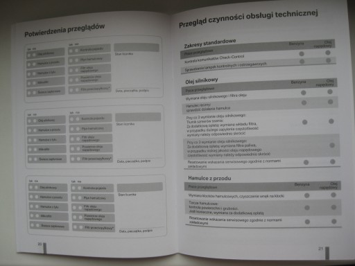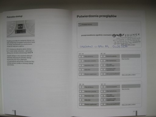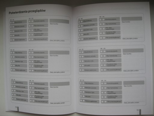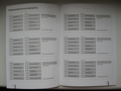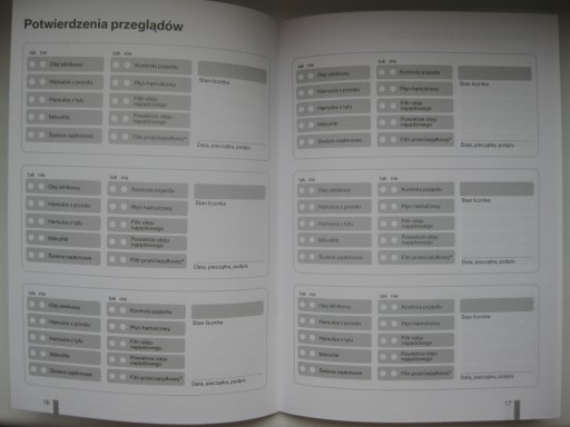 Oryginalna Polska książka serwisowa (przeglądów) do samochodów