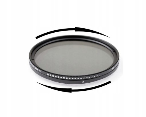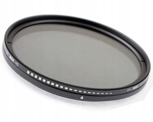 Filtr szary pełny z możliwością płynnego przygaszania w zakresie 8 działek przysłony (NDx2-NDx400). Zmiana przyciemnienia odbywa się poprzez przekręcanie frontowego pierścienia filtra.