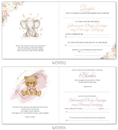 Zaproszenia na Chrzest Święty i Pierwsze Urodziny