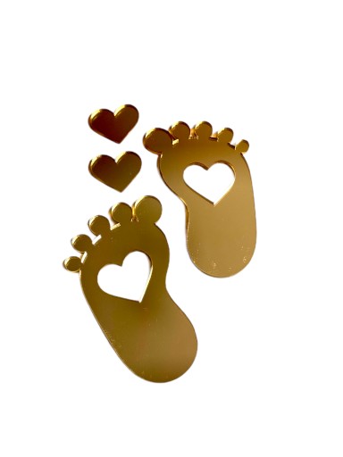 DEKOR na tort STOPKI z serduszkami ZŁOTE LUSTRZANE