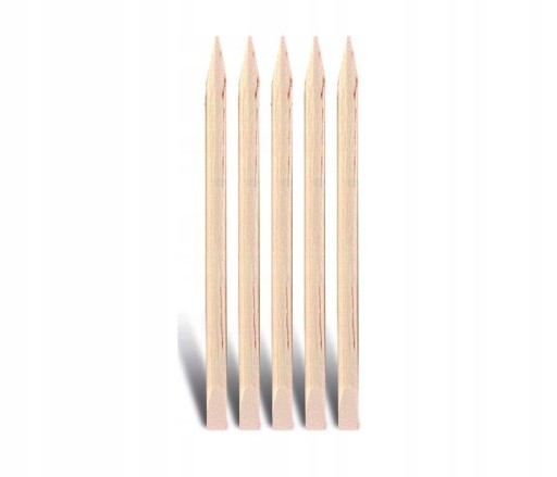 Patyczki zostały wykonane z drzewa pomarańczy, co zapewnia odpowiednią twardość oraz trwałość. Idealnie sprawdzają się do stosowania w profesjonalnych zakładach kosmetycznych. Wymiary patyczków do skórek: długość 7,5 cm