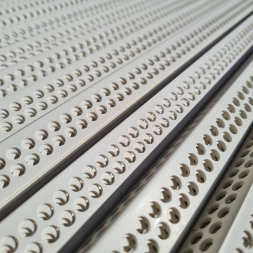 Prosty narożnik perforowany PCV, służący do wykańczania suchych systemów zabudowy. Prosty narożnik wykonany z tworzywa sztucznego PCV służący do wykańczania suchych systemów zabudowy. Odporny na wilgoć. Poprawia on prostoliniowość powierzchni, co sprawia, że ściana jest dobrze wykończona i lepiej się prezentuje.