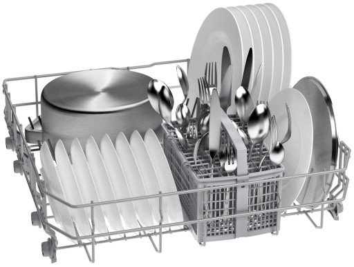 - Kosz dolny: 2 składane przegródki na talerze Kosz na sztućce