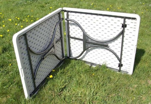 Bardzo praktyczny i lekki. Konstrukcja wykonana ze stali. Blat wykonany z mocnego tworzywa sztucznego. Ozdobne nogi dodają klasy, dzięki czemu stół sprawdzi się nawet na eleganckich przyjęciach i imprezach plenerowych. Polecany także na pola biwakowe, kempingowe i wszędzie tam, gdzie przyda się składany stół ogrodowy.