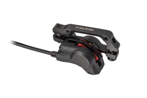 Skuteczny i zapewniający niezawodną siłę hamowania niezależnie od warunków pogodowych hamulec hydrauliczny. Dzięki załączonemu w zestawie adapterowi jest kompatybilny z tarczami hamulcowymi o średnicy 160 mm.
