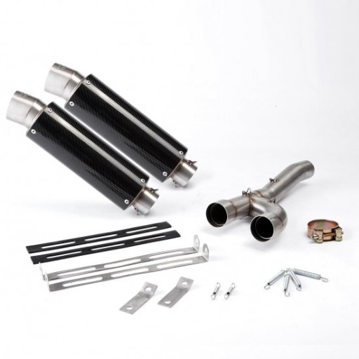 Każdy tłumik wykonany jest całkowicie ręcznie przez najlepszych fachowców z wieloletnim doświadczeniem. Obudowa wykonana z włókna węglowego w wysokim połysku. Do produkcji wykorzystano też stal nierdzewną SS304 a spoiny wykonano technologią TIG. Tłumik ten jest również dużo lżejszy od seryjnego co przekłada się bezpośrednio na osiągi motocykla. Waga samej jednej puszki końcowej to niecały 1kg.