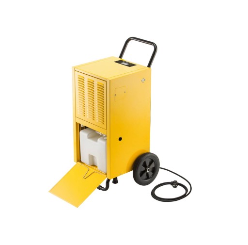 WYDAJNY, WYSOCE SKUTECZNY OSUSZACZ POWIETRZA I BUDOWLI, DO SUSZENIA POMIESZCZEŃ, NP. PO ZALANIU WSKUTEK USZKODZENIA INSTALACJI, PO POWODZIACH, DO SUSZENIA ZATĘCHŁYCH PIWNIC ITP. ORAZ DO PRZYSPIESZONEGO SUSZENIA NP. BETONU, MURÓW, TYNKU, JASTRYCHU. WYDAJNOŚĆ USUWANIA WILGOCI ≤ 80 L/24 H, ILOŚĆ POWIETRZA ≤ 850 M³/H.