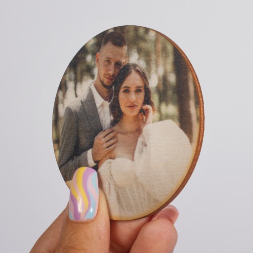 Foto magnes wykonany został z sucho-trwałej sklejki brzozowej o grubości 3 mm. Magnes serce wycinany jest precyzyjnym laserem, a kolorowy nadruk utrwalony światłem UV. Nadruk wykonany zostaje po całości powierzchni, dlatego na krawędziach widoczny będzie delikatny efekt "zadymienia". Jest to naturalne zjawisko, które dodatkowo nadaje zdjęciu niepowtarzalny klimat. Wysokiej jakości druk jest odporny na ścieranie, wilgoć i promieniowanie UV.