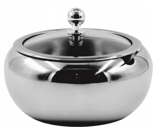 Zamykana pokrywa, z uchwytem w kształcie kuli.
