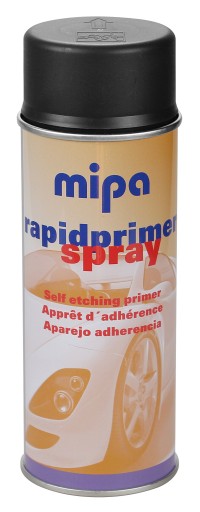 Mipa Rapidprimer-Spray to szybkoschnący jednoskładnikowy podkład antykorozyjny o doskonałej jakości. Szczególnie przydatny jako środek wiążący w przypadku małych powierzchni naprawczych i szlifierskich. Przyczepność do żelaza, stali, ocynku oraz przy odpowiedniej obróbce wstępnej – do aluminium, jak również do nadających się do lakierowania tworzyw sztucznych powszechnie stosowanych w samochodach osobowych (w razie potrzeby zalecamy wykonanie natrysku testowego).