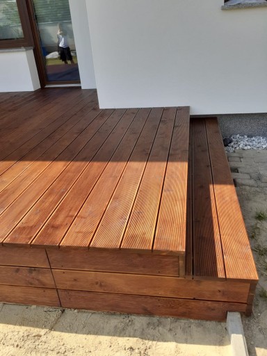 Realizacje wykonane z modrzewia syberyjskiego cechują się wysoką trwałością na warunki atmosferyczne.