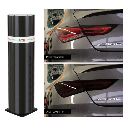 Wysokiej jakości termoplastyczna, wylewana folia do przyciemniania lamp APA. Posiada klej kanalikowy ułatwiający wyprowadzenie pęcherzyków powietrza. Dzięki bardzo dobrym właściwościom plastycznym folia sprawdza się dobrze także na bardzo małych powierzchniach takich jak kierunkowskazy. Posiada dodatkową warstwę ochronną tzw. liner, którą należy ściągnąć przed rozpoczęciem procesu aplikacji.