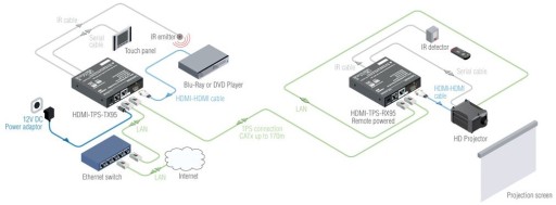 Przedłużacze HDMI-TPS-TX95 i HDMI-TPS-RX95 skrętką HDBaseTTM zapewniają rozszerzenie nieskompresowanego wideo Full-HD na duże odległości za pomocą jednego kabla CATx. Urządzenie oferuje dwukierunkowy transfer RS-232, IR i Ethernet na tym samym kablu CATx, który przenosi sygnał wideo. Wzmacniacze TPS obsługują pełną zgodność z HDCP i EDID i działają we wszystkich standardowych rozdzielczościach AV do 4K i 48-bitowej głębi kolorów, obsługując wszystkie standardowe formaty audio, a także sygnały 3D 120 Hz. Zdalne zasilanie jest dostępne za pomocą pojedynczego kabla CATx, ale można również użyć lokalnego źródła zasilania. Wszystkie urządzenia mogą być montowane na półce rack lub używane samodzielnie.