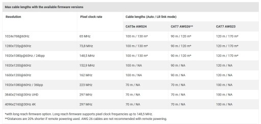Zasięg do 170 metrów (z kablem CAT7 S/FTP AWG23, 1920x1080p60)