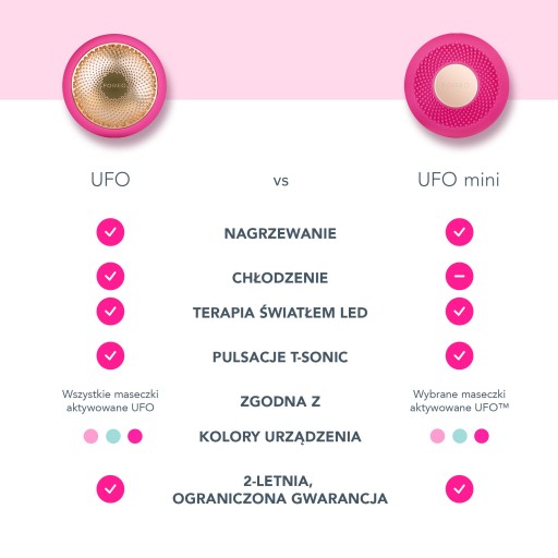 - UFO mini działa z aplikacją "FOREO For You” dostępną na urządzenia z systemem Android i iOS