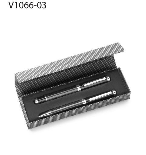 Zestaw piśmienny w ozdobnym etui z magnetycznym zamknięciem, długopis i pióro kulkowe.