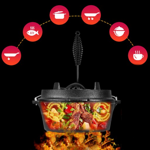 Żeliwo to materiał bardzo wytrzymały, odporny na wysoką temperaturę, zarysowania i uszkodzenia mechaniczne. Dodatkowo doskonale przewodzi ciepło i długo je utrzymuje co sprawia, że potrawy dłużej będą ciepłe. Sprawdzi się przy daniach które potrzebują długiej obróbki cieplnej.