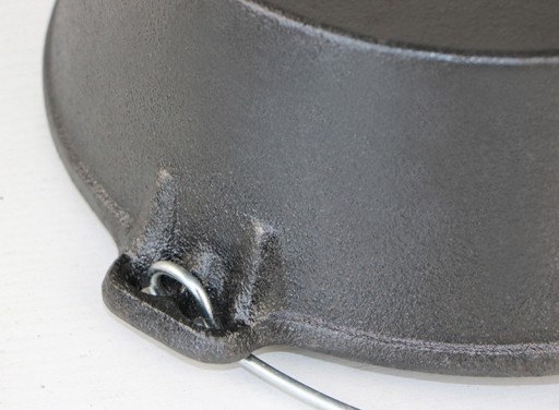 Kociołek posiada specjalna rączkę ułatwiającą jego przenoszenie lub powieszenie np. na gałęzi. Zwój drutu działa na zasadzie radiatora co sprawia, ze tak bardzo się nie nagrzewa.