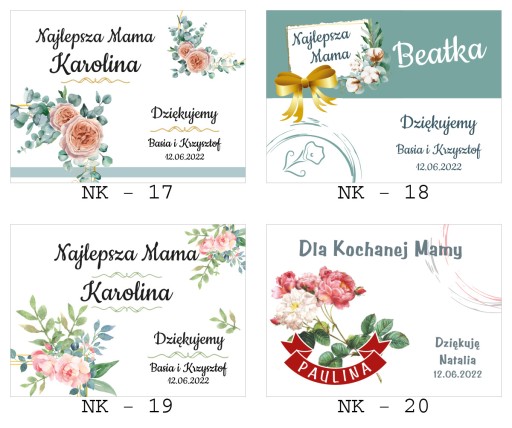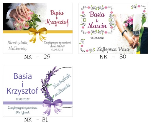 - W wiadomości dla sprzedającego lub na adres e-mail prześlij nam: numer wzoru, treść życzeń na tabliczkę, imiona, datę lub własny tekst, wzór.