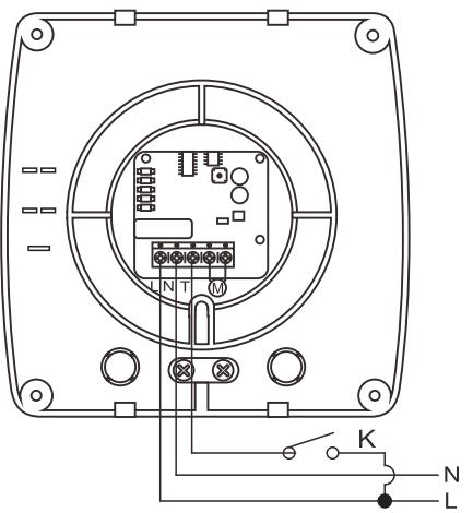 Dodatkowo należy podłączyć trzecim przewodem tą samą fazę L, poprzez przełącznik K, do zacisku T.
