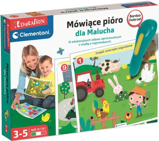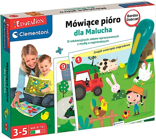 - Dzięki 12 zadaniom o rosnącym stopniu trudności i elektronicznemu pióru, które informuje, czy udzielona odpowiedź jest poprawna czy błędna, zabawka Mówiące pióro dla Malucha pomaga dzieciom w rozwoju podstawowych kompetencji, takich jak rozpoznawanie kształtów i kolorów oraz orientacji przestrzennej. Ponadto podczas zabawy dzieci ćwiczą koncentrację i zmysł obserwacji, rozwijając samodzielność i umiejętność rozpoznawania i komunikowania emocji.