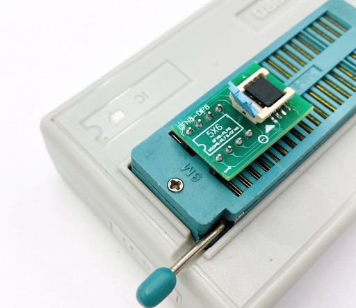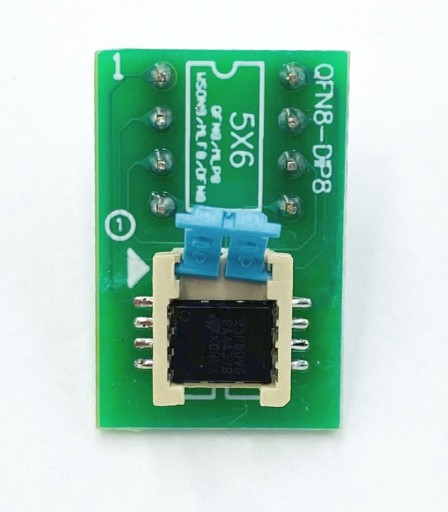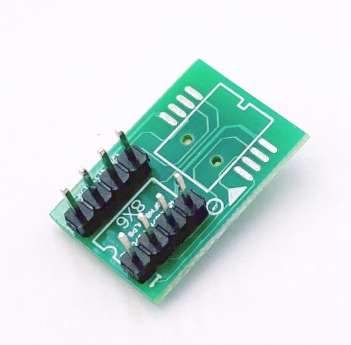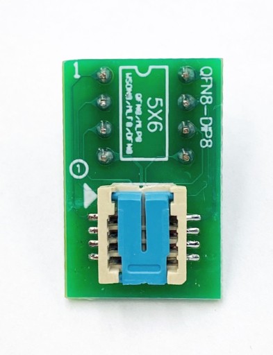 Adapter WSON8 (QFN8 / MLP8 / MLF8) SMD na DIL 8 - adapter dla szeregowych pamięci Flash, pamięci EEPROM, mikrokontrolerów oraz innych układów w obudowach WSON8 (QFN8 / MLP8 / MLF8) o rozmiarach 5x6mm pozwalający na programowanie i używanie ich w podstawkach bądź na pad'ach DIL8 programatorów i innych urządzeń.