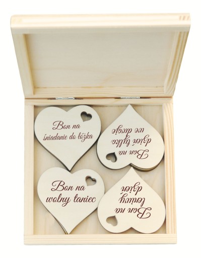 Obdaruj ukochaną osobę tym co najcenniejsze posiadasz. Swój czas! Super pudełeczko z cenna zawartością - aż 12 sztuk bonów, bilecików z grawerem.