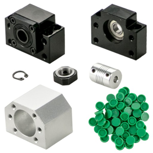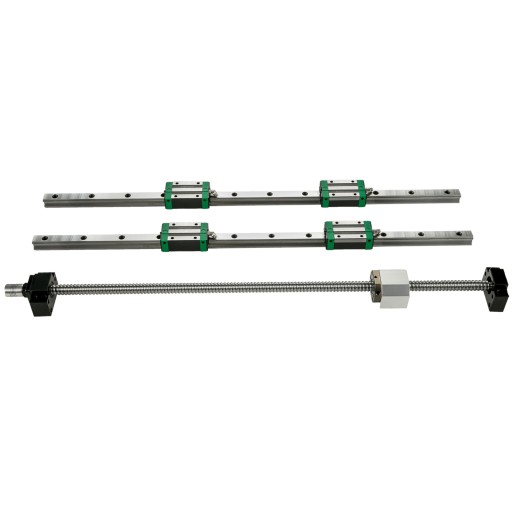 Prowadnica liniowa HGR20 700 mm: Ten zestaw prowadnic liniowych zawiera 2 sztuki prowadnicy liniowej HGR20-700 mm, 4 bloki, 1 śrubę kulową RM1605-700 mm, 1 nakrętkę kulkową, 1 nakrętkę BF12 / BK12 i 1 złącze śrubowe.