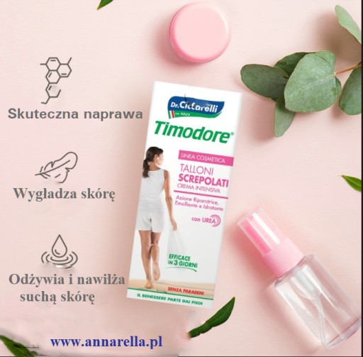 Intensywny Krem na Popękaną skórę pięt - Talloni Screpolati Timodore odżywia, nawilża i skutecznie naprawia suchą skórę, która ma tendencję do pękania. Składniki aktywne w kremie mają dużą moc zmiękczającą i nawilżającą. Do tych składników należy: