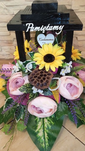 (cena dotyczy tylko kompozycji z latarnią, natomiast bukietu do wazonu dostępny na innej aukji)