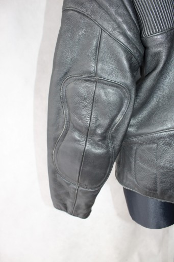 Skórzana kurtka, zapinana na zamek, wewnątrz podszewka, 1 kieszonka, zamek do dopięcia spodni, na zewnątrz 4 kieszonki, grubsze ramiona i łokcie, u dołu rękawków zamek- używana stan dosyć dobry- normalne ślady użytkowania. WYMIARY dł- 60 cm, szer pod pachami- 51x2 cm, dł rękawa od pachy- 46 cm, od szyi- 76 cm, u dołu- 48x2 cm.