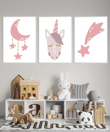 Розовый ЕДИНОРОГ Набор постеров для детей А4