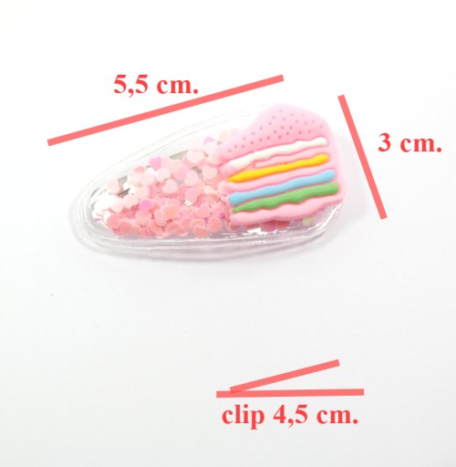 METALOWA SPINKA (SREBRNY PYK) W PRZEZROCZYSTEJ OSŁONIE, WYKONANEJ Z MIĘKKIEGO PLASTIKU WYPEŁNIONEJ CEKINAMI W KOLORZE JASNO RÓŻOWYM.