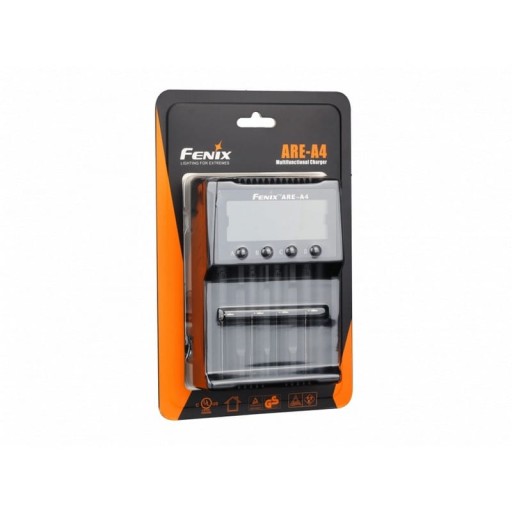 Fenix ARE-A4 to inteligentna ładowarka nowej generacji, dzieki, której prawidłowo i bezpiecznie naładujemy różnego rodzaju akumulatory Li-ion, Ni-MH oraz Ni-Cd. Pomimo zaawansowanej konstrukcji, obsługa urządzenia jest niezwykle prosta. Po włożeniu akumulatorów i podłączeniu ładowarki do prądu, na wyświetlaczu LCD pojawią się informacje o poziomie napięciu oraz graficzna wizualizacja poziomu ich naładowania.