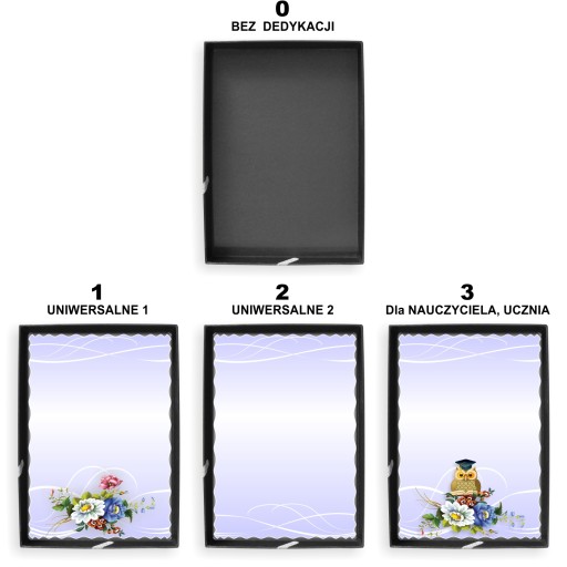 - Numer tła dedykacji na opakowaniu prezentowym, tylko jeżeli chcesz dołączyć własną dedykację.