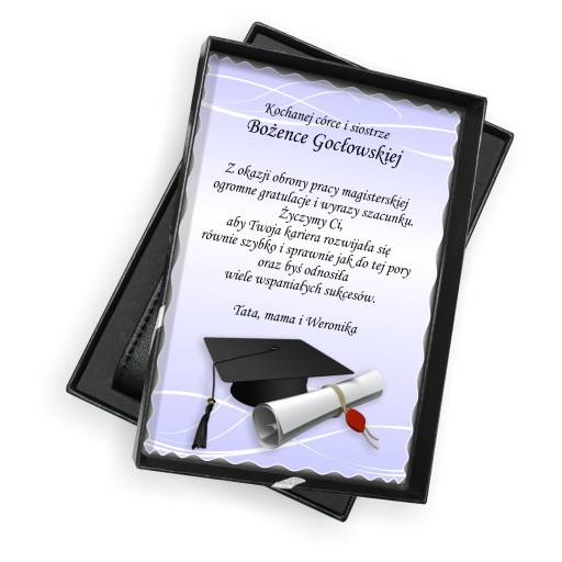 - opakowanie upominkowe - drukowana dedykacja, wklejana na górnej, wewnętrznej części opakowania.