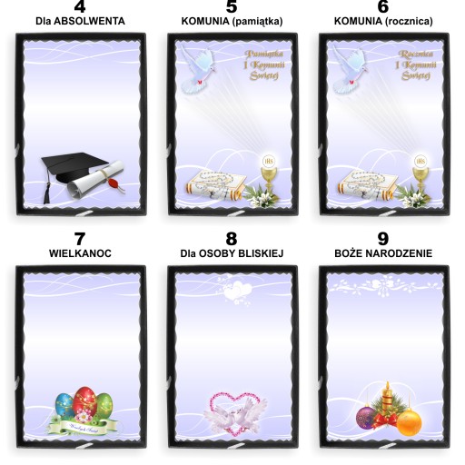 - Różne tła dedykacji do wyboru, w zależności od okoliczności.