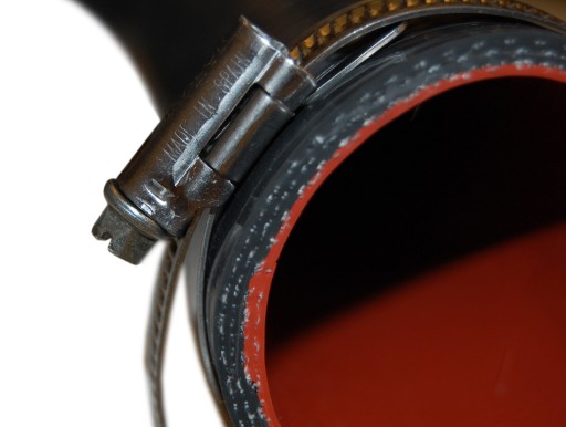 Na górze, za pomocą opaski zaciskowej łączy się on z plastikową rurą intercoolera przymocowaną do silnika, a na dole za pomocą szybkozłączki z plastikowym kanałem dolotowym.